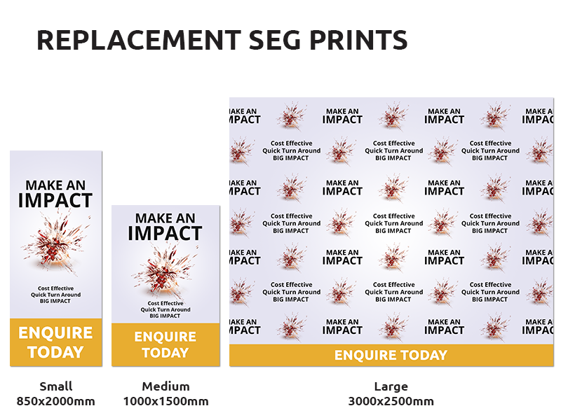Please request a quote below and we will send you the price.Our SEG Lightboxes are the perfect portable indoor display. They pack down into an easy-to-carry padded box, our material is machine washable & best of all, the light functionality creates a tone that makes them stand out amongst a sea of other indoor displays. Order your replacement Lightbox Fabric today for a quick interchangeable message. Silicon edge is 3mm thick and 11mm wide ( 11m edge stitched into media, 3mm into frames)