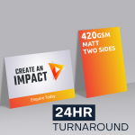 $1.00Looking for an economical way to make your card shine? Why not try our 420gsm Matt Two Sided card with Spot UV on both sides. It’s the perfect option to take your clients card to the next level while keeping within the budget.