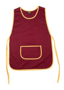 –Â Classic bib apron style with adjustable neck strap.