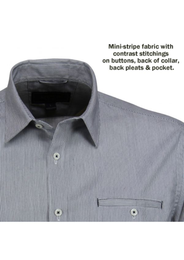 - 50% Combed Cotton, 50% Polyester Yarn-Treated Cool Dry® Mini-stripe fabric