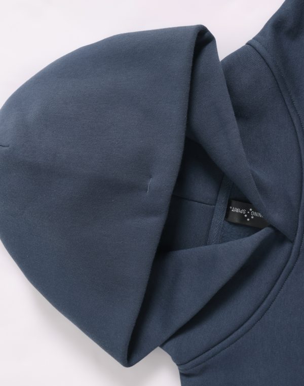• Double Self-fabric hood with no drawcord.