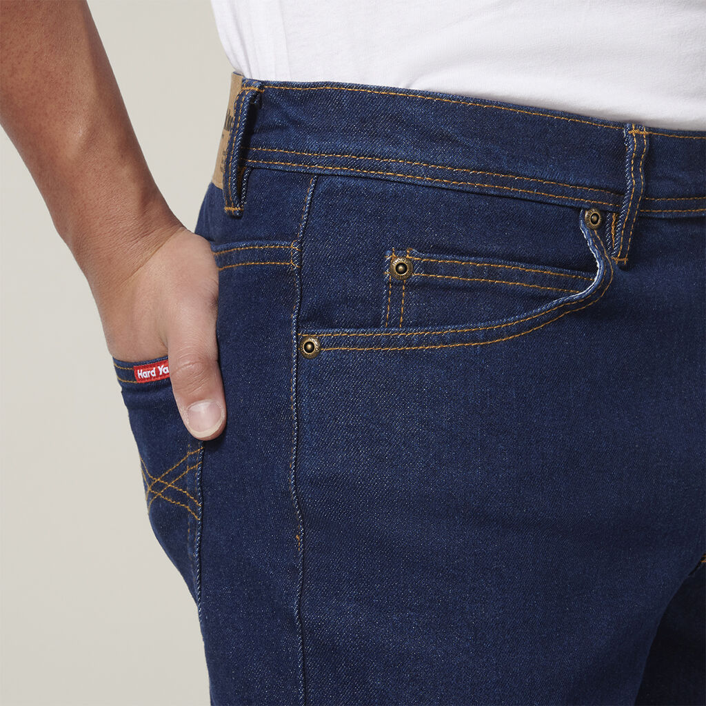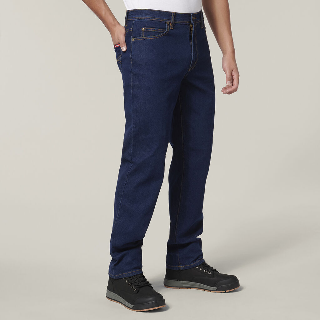 Comfort reigns in these straight leg stretch denim work jeans with 2% elastane blended with 98% cotton denim so you can easily work in tight or awkward spaces.