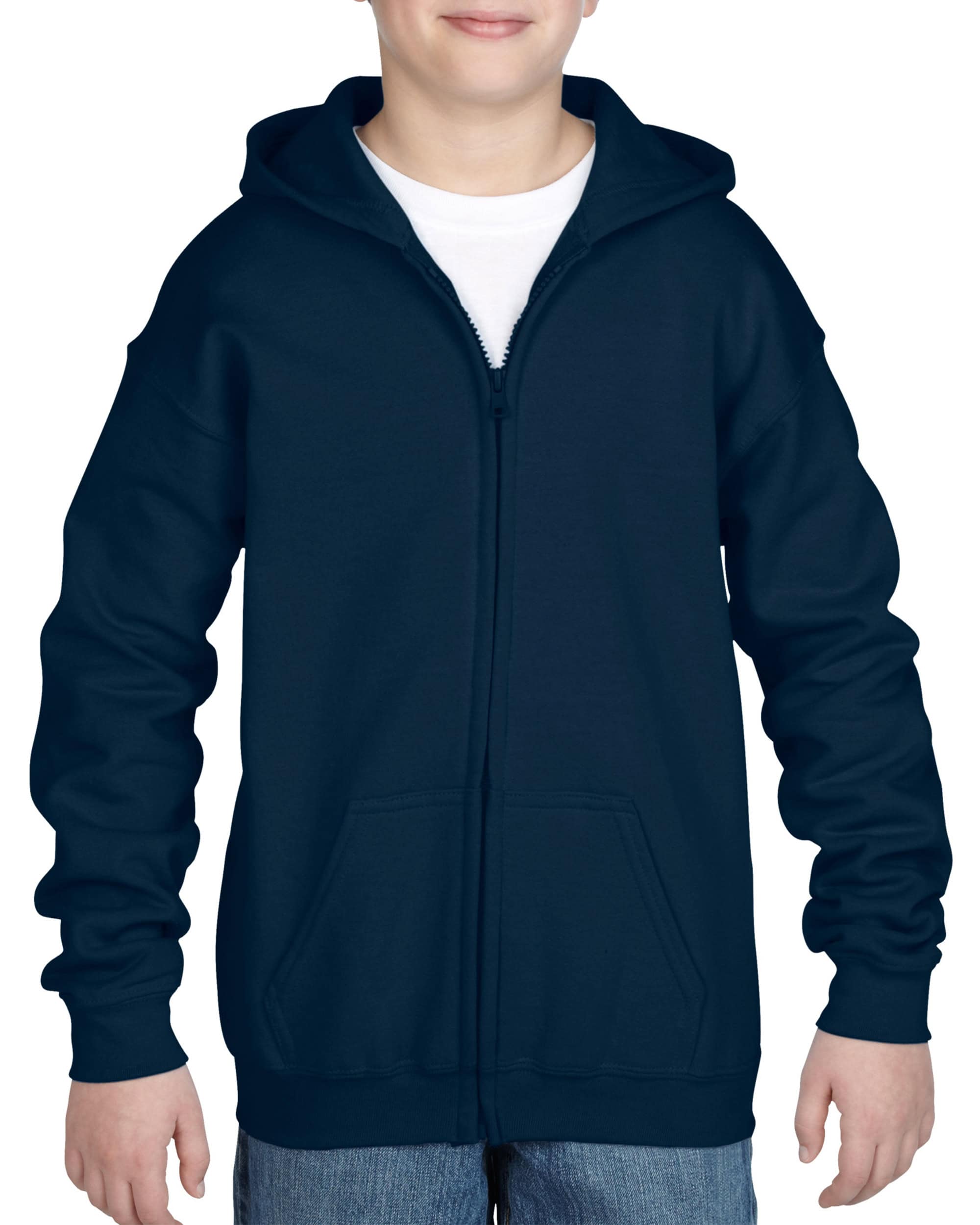 Heavy Blend 18600B Youth Zip Hooded Sweatshirt is designed to keep kids cozy and stylish. Its 50% cotton and 50% polyester blend offers a soft, comfortable feel that is perfect for everyday wear and active play. The durable, pill-resistant fabric ensures long-lasting wear, while the classic design provides a versatile look suitable for any occasion. This sweatshirt keeps kids warm and comfortable, whether heading to school or enjoying outdoor activities.