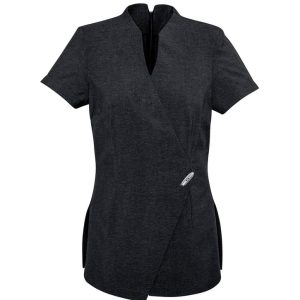 Contrast colour on sides, inside placket, and collar.