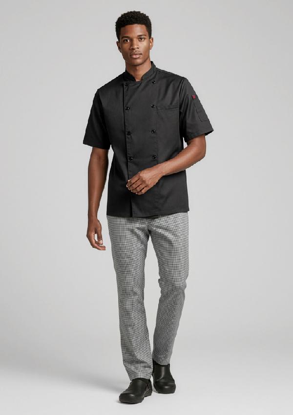 Comfort is key with these modern, loose fitting chef pants. Lightweight and durable with deep side pockets and a gently elasticated waist for that cool casual look.