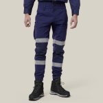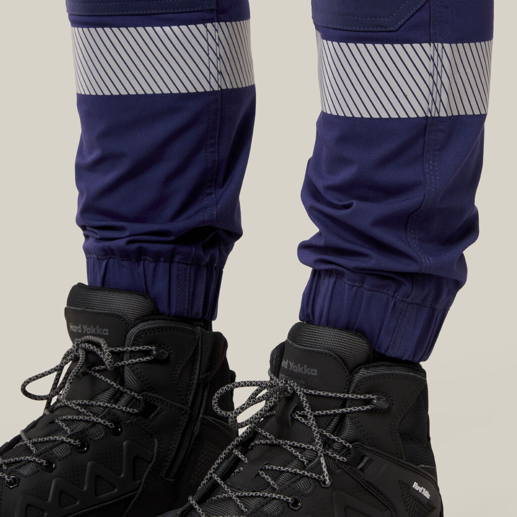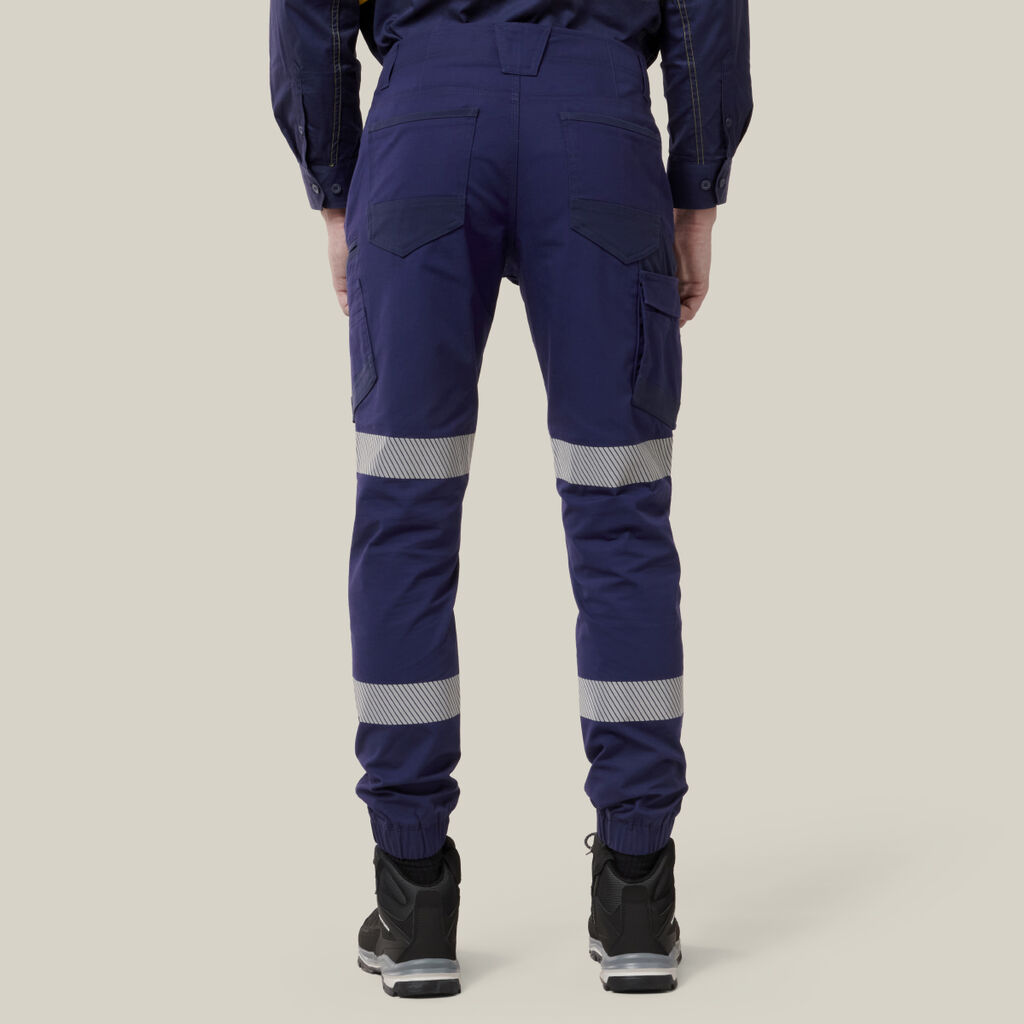 A Slim fit industrial taped cuff pant with d double hoop segmented stretch tape. These pants are made with a durable Cotton rich Ripstop fabric. The Polyester content in the fabric is made from REPREVE® yarn technology. REPREVE® uses recycled plastic bottles reducing the number of bottles in landfill. The multiple pockets on these pants make them a functional yet stylish work wardrobe staple.