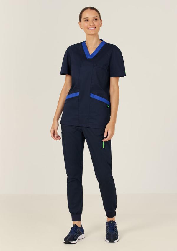 It’s the go-to unisex style. The Next-Gen Antibacterial Koller Scrub Top offers a clever breathable cotton-rich fabric that’s soft to the touch and ultra comfortable to wear. Exclusive to NNT, it’s coated with a unique antibacterial finish for extra protection and lasting freshness even on the busiest days. The contrasting colour panels at the V neckline and hip pockets add interest and personality to this functional design.