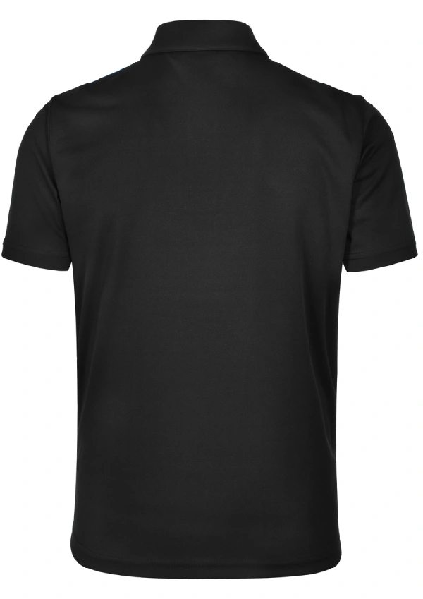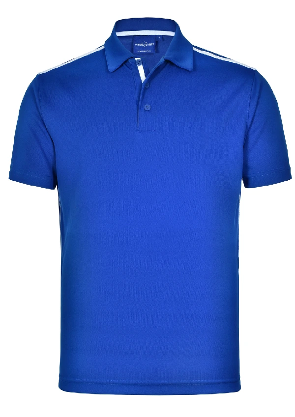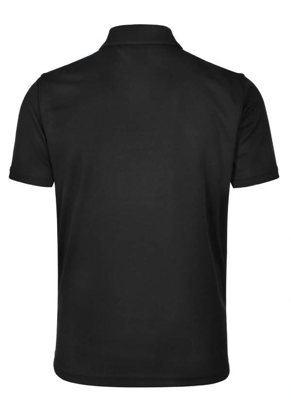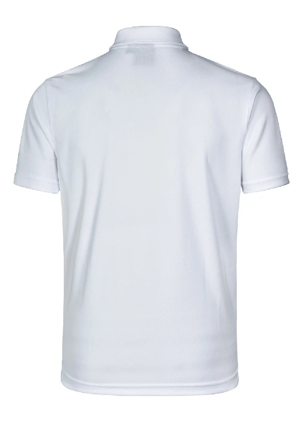 Style: Fine pique fabric with contrast stretch tapes on shoulders, inner placket and body sides. Self-fabric collar. UPF 30+ UV protection.