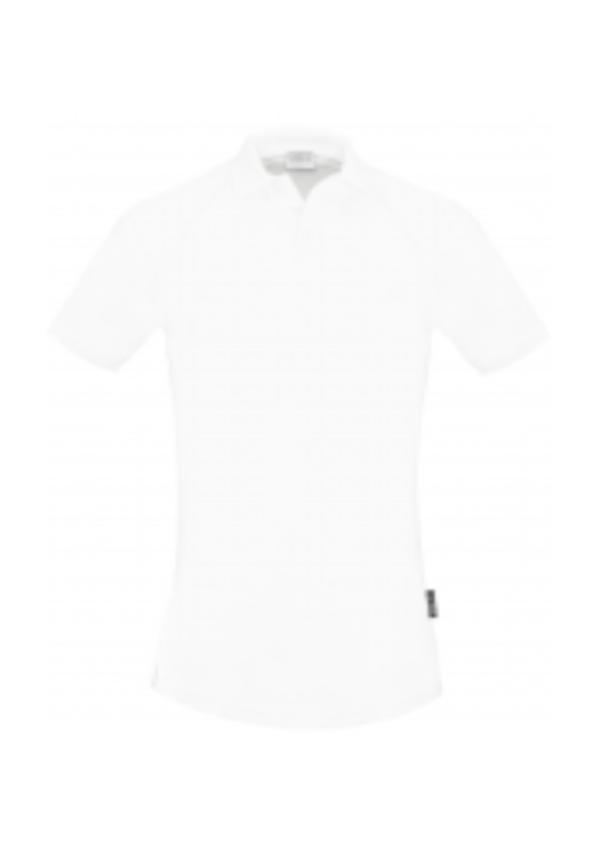 - Mens has three-button placket and ladies has open Y-neck with three buttons