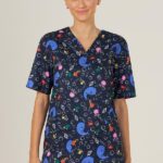 Bring a playful vibe to your workday with our Under The Sea Scrub Top. This versatile, unisex style features a flattering V neckline and straight hem with inbuilt side splits for ease of movement. Handy hip pockets and a chest pocket offer extra storage when you’re on the go. The hard-wearing, wash-and-go scrub fabric is splashed with our limited edition seasonal print. Shells and sea creatures swim across a midnight blue background, adding a fun finish to this highly functional design.