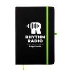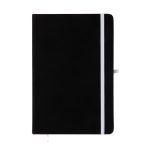 Introducing our Venture Supreme A5 Notebook, the perfect blend of style and functionality! This notebook offers all the features of the Venture A5 Notebook with some exciting additions. Crafted with a sleek all-black cover, this notebook stands out with its matching colour elastic retaining closure, ribbon page marker, pen loop, and coloured edged pages. Choose from 7 highlight colours to add a pop of personality to your notebook. With 80 leaves and 160 lined white pages (70GSM), there’s plenty of space for all your notes and thoughts. The materials used include Polyurethane, Cardboard & Paper, ensuring durability and a premium feel. Customise your notebook with your logo or design, using our screen print or digital print decoration options. Ideal for corporate gifts, promotional items, or personal use, the Venture Supreme A5 Notebook is sure to impress.
