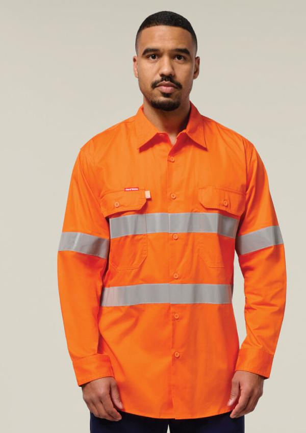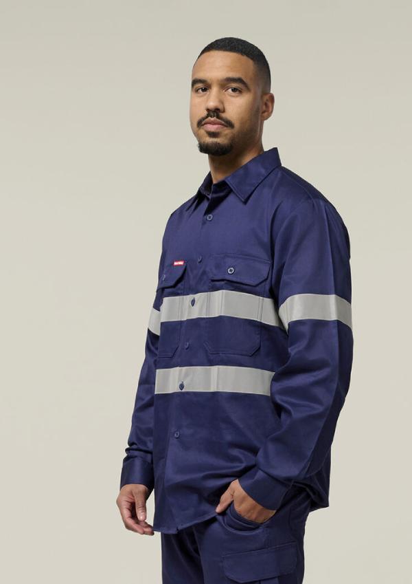 Hi-Vis Cotton Drill Long Sleeve Taped Shirt